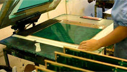 Soldermask ink is applied over the whole PCB surface. Using artworks and UV light we expose certain areas to the UV and those areas not exposed are removed during the chemical development process – typically the areas which are to be used as solderable surfaces. The remaining soldermask is then fully cured making it a resilient finish.