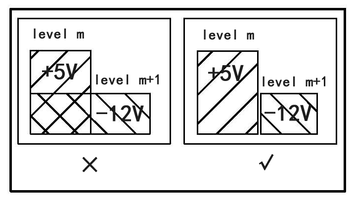 Different power layers should avoid overlapping in space to reduce interference between different power supplies. This is especially important for power supplies with significantly different voltages. If it is difficult to avoid, consider placing a ground plane in between.