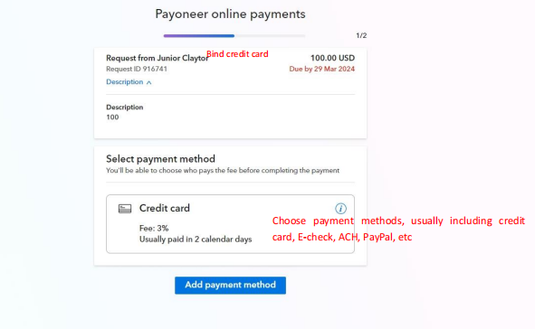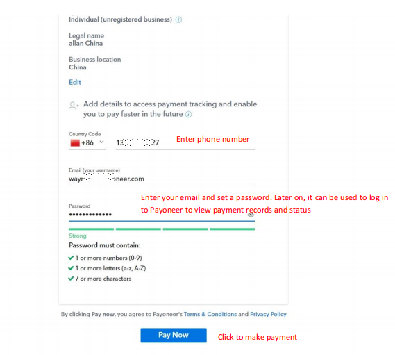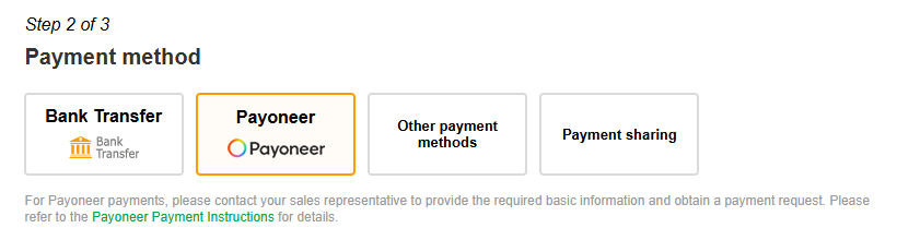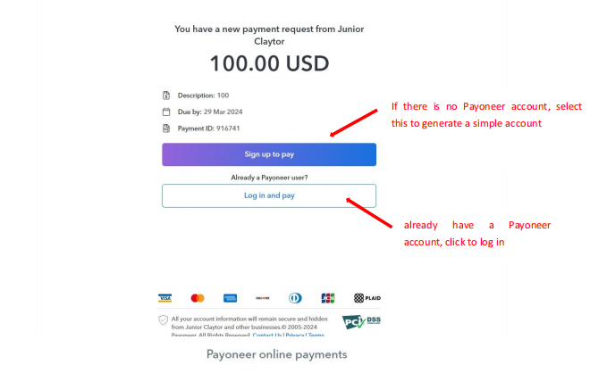 3. Click the payment link to go to the Payoneer payment page. If you are a new user, you will need to sign up for a Payoneer account before making the payment.