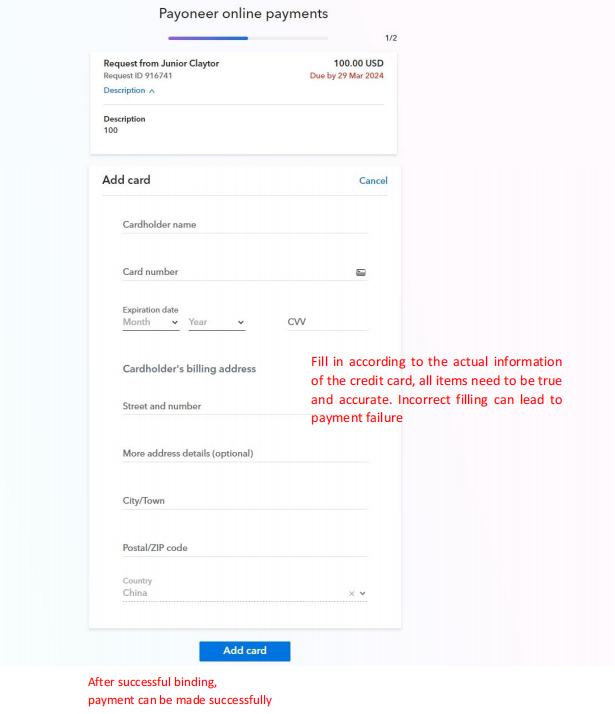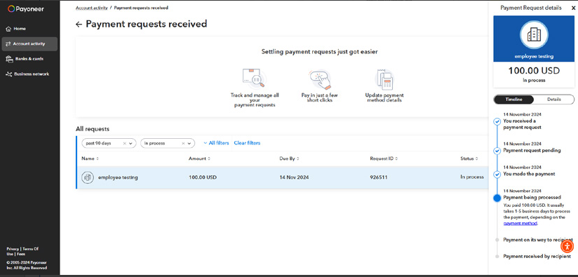 6. Use your credit card to pay for the request and you can track the payment status of each payment request.