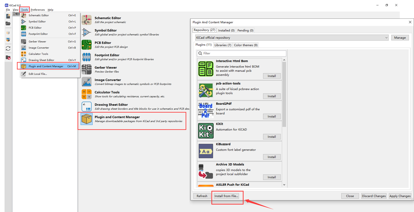 Just open the "Plugin and Content Manager" from the KiCad main menu an install the "PCBWay Plug-in for KiCad" plugin from the selection list.